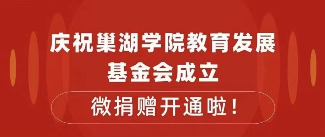 • 慶祝巢湖學(xué)院教育發(fā)展基金會成立,微捐贈開通啦!